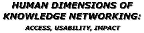 The goal of this workshop is to assess current understanding, across disciplines, of the human dimensions of knowledge networking. An important aspect of this goal involves identifying and prioritizing research topics and agendas relating to the implement