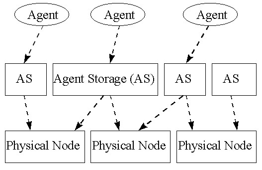 figure, an agent storage can be mapped onto one or multiple physical nodes.